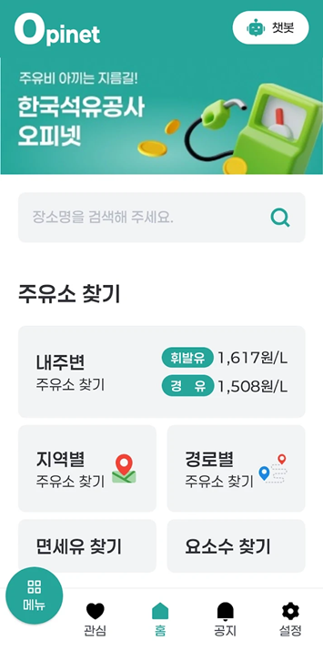 - 관심 지역 설정하기: 매번 GPS를 켜지 않아도 되도록, 내가 자주 다니는 동네를 관심 지역으로 등록해 두세요. 예를 들어 내가 사는 동네를 1순위 관심 지역으로 설정해 두면, 앱을 켜자마자 우리 동네 실시간 최저가 주유소 TOP 5가 메인 화면에 바로 뜹니다.