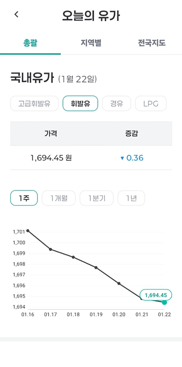 - 더 중요한 것은 ‘유가 동향(그래프)’입니다. 최근 1주일간 기름값이 오르는 추세인지, 내리는 추세인지 화살표와 그래프로 직관적으로 알려줍니다. 만약 계속 오르는 우상향 추세라면 오늘 당장 주유소로 달려가 ‘가득(만땅)’을 채우는 것이 이득이고, 꺾이는 하락 추세라면 당장 필요한 만큼만 주유하며 며칠 더 기다리는 아주 스마트한 대처가 가능해집니다.